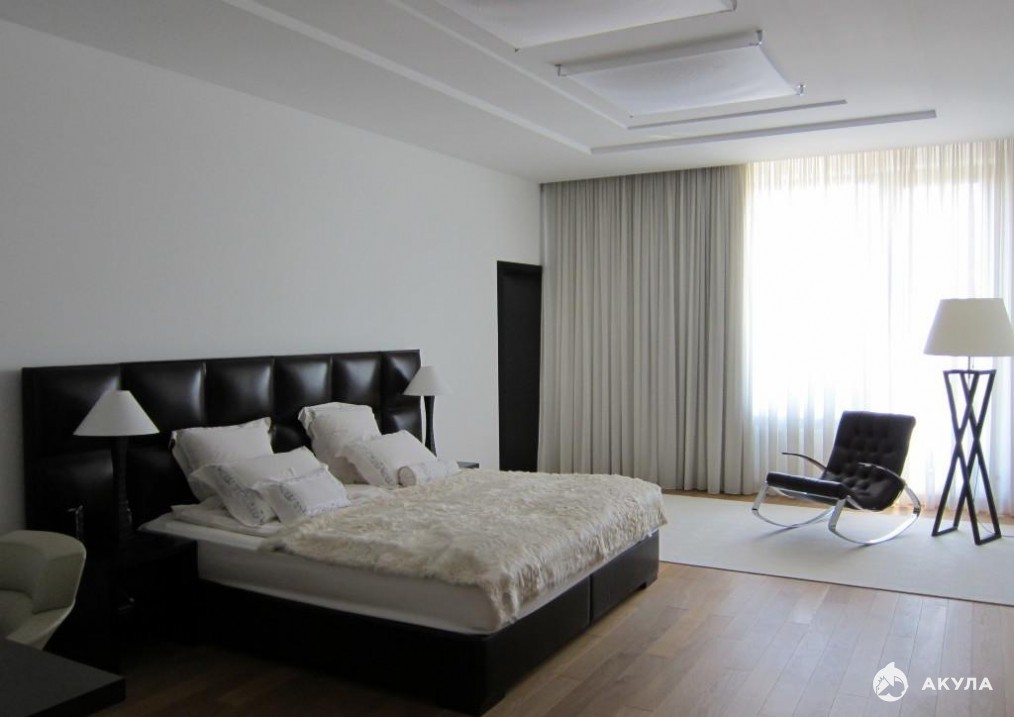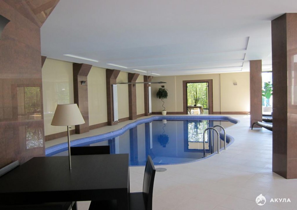 Первый этаж: прихожая, гардеробная, гардеробная-холодильник, гостевой с/у, кабинет с с/у, каминный зал с двумя мягкими зонами, парадная кухня, столовая, рабочая кухня с кладовой, бассейн с водопадом и противотоком, турецкая баня, сауна, комната отдыхаВторой этаж: три спальни с с/у и гардеробными, две террасыМансарда: гостевая спальня с с/у и террасойОтдельно стоящий гостевой дом с гаражом на 6 а/м.