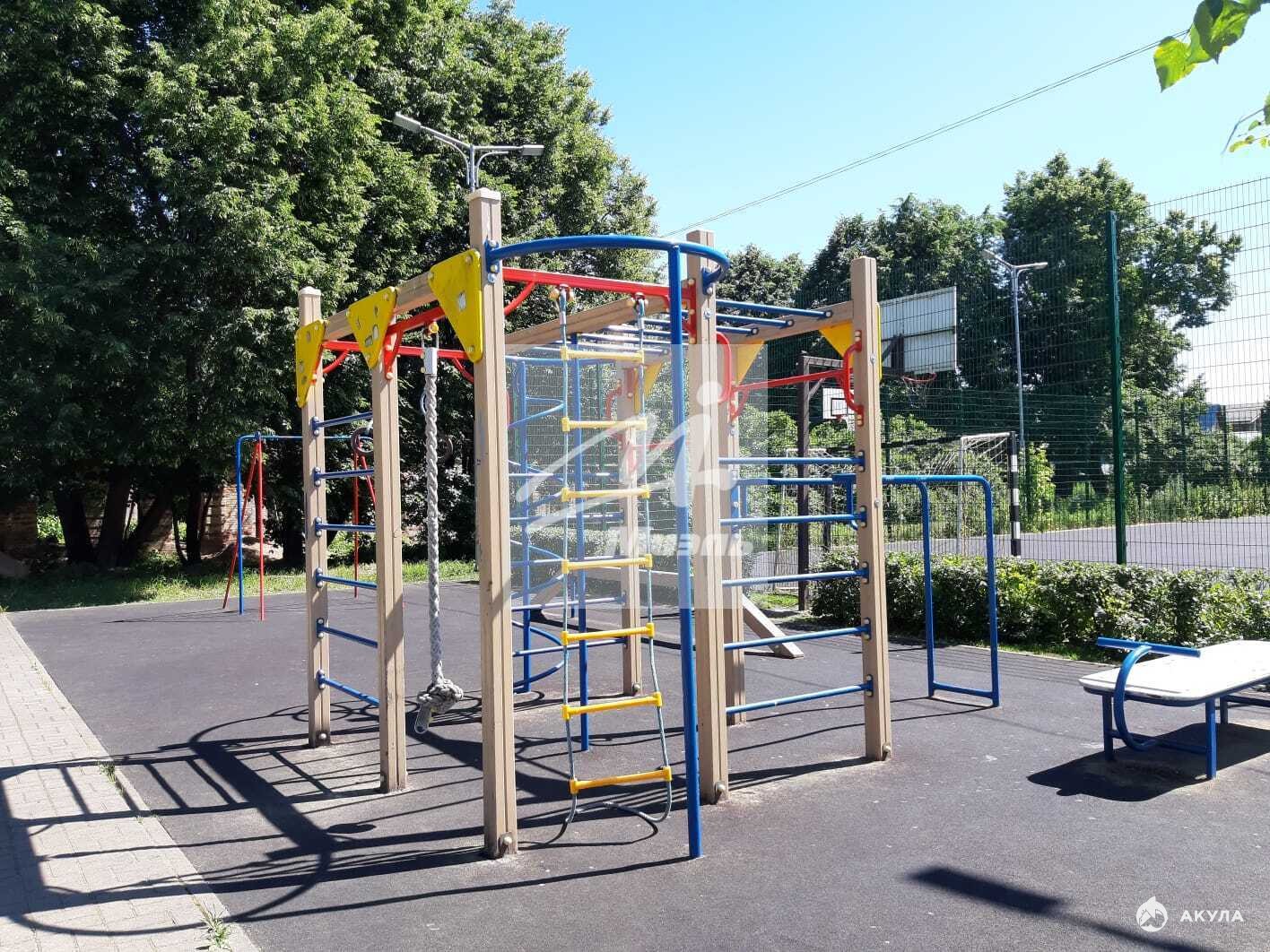По краям участка растут взрослые пушистые сосны и березы. На противоположной стороне улицы находится лесной массив.