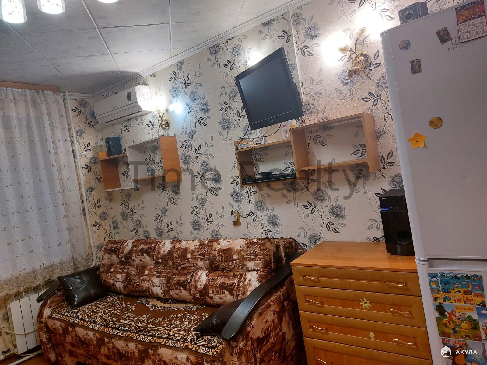 В комнате установлены качественные стекло-пакеты, кондиционер, телевизор, диван, кресло-кровать, шкаф для одежды, стол, стулья, полки, а также есть двухкамерный холодильник, стиральная машинка, микроволновка.
